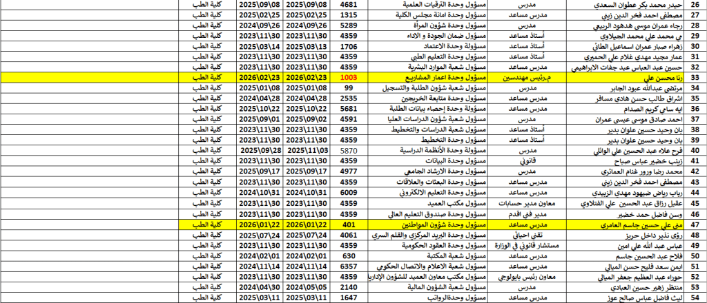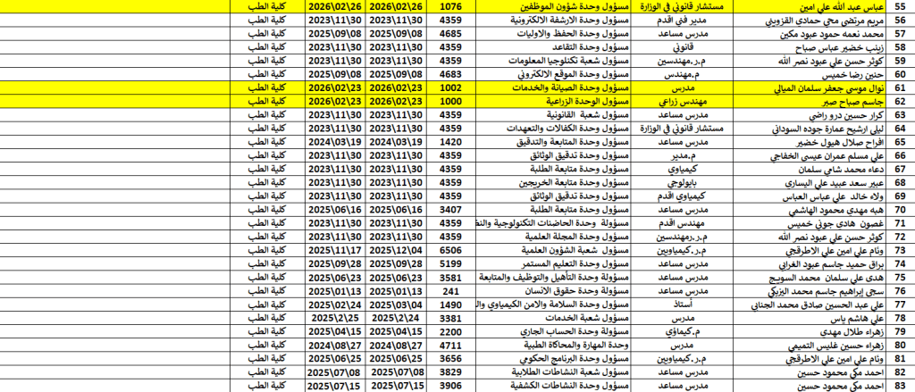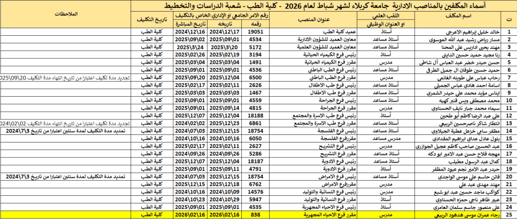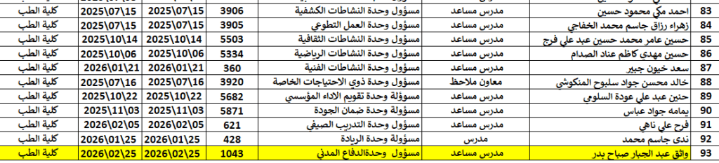 الشعب والوحدات الخاصة في كلية الطب
