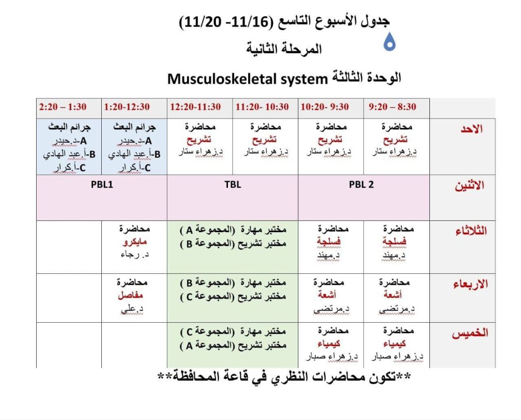 جدول الاسبوع التاسع للمرحلة الثانية