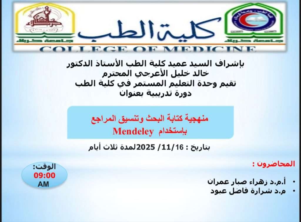 دورة تدريبة بعنوان منهجية كتابة البحث وتنسيق المراجع باستخدام Mendeley