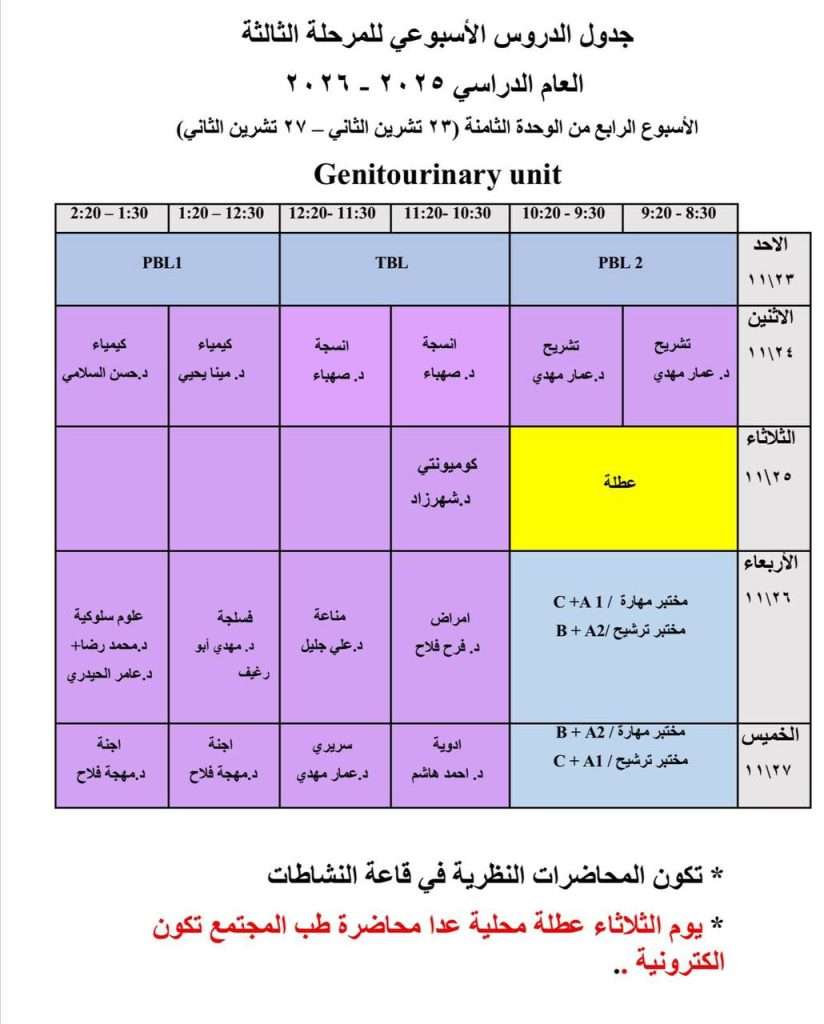 • جدول المحاضرات الالكترونية