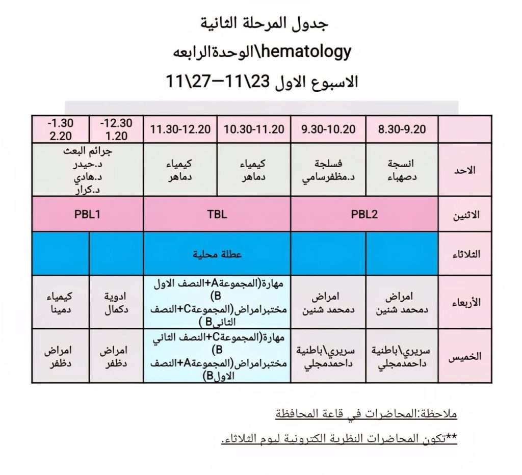 • جدول المحاضرات الالكترونية