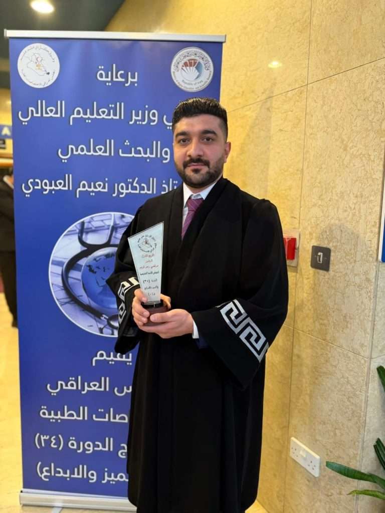 وأكد معالي الوزير، خلال مراسم التكريم ، أهمية دعم الطاقات العلمية الشابة التي تحقق منجزات بارزة على المستوى الوطني، مشيرًا إلى أن هذه النجاحات تسهم في رفع مستوى التعليم الطبي في العراق وتعزيز سمعة الجامعات العراقية في المحافل التخصصية.